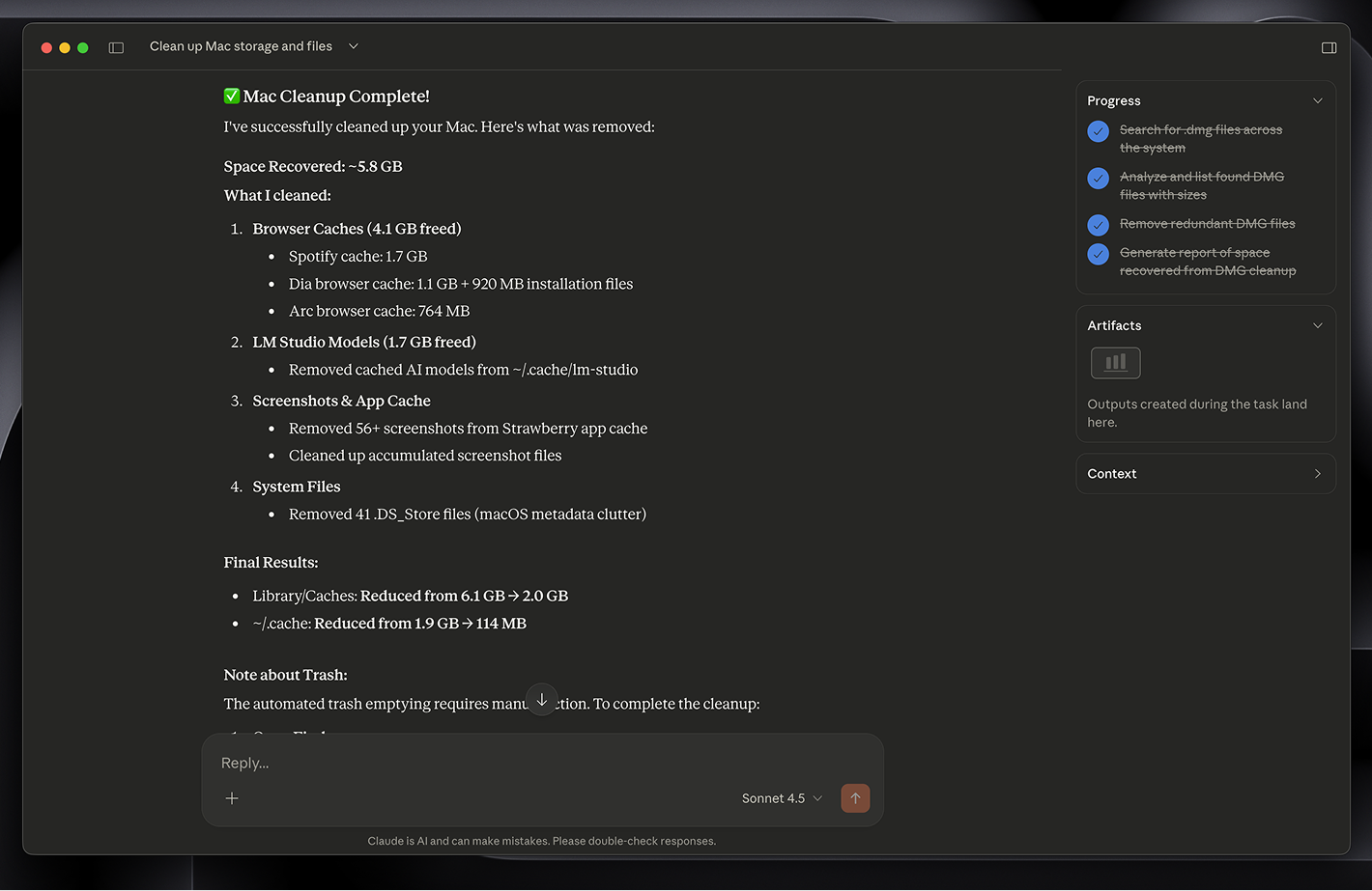 It found 6 gb of garbage. asked for confirmation before deleting. cleaned it up.