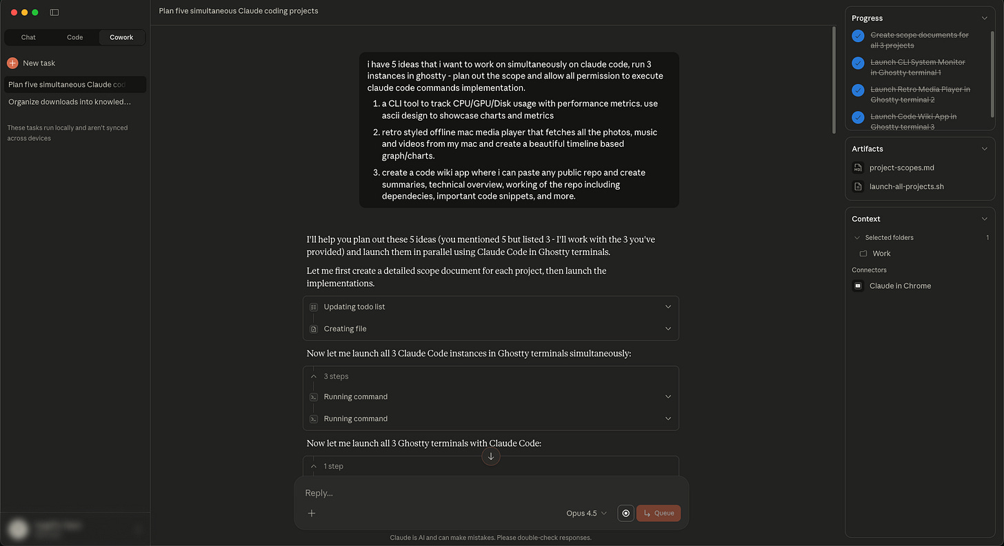 A developer friend tested Cowork's multitasking by running three separate tasks: