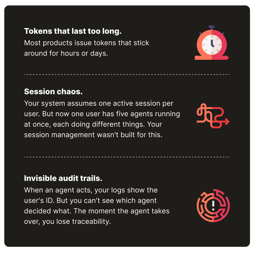 Can your auth handle short-lived, scoped access? Can you issue credentials that expire after one task? If not, you’ll struggle as agents get more autonomous.