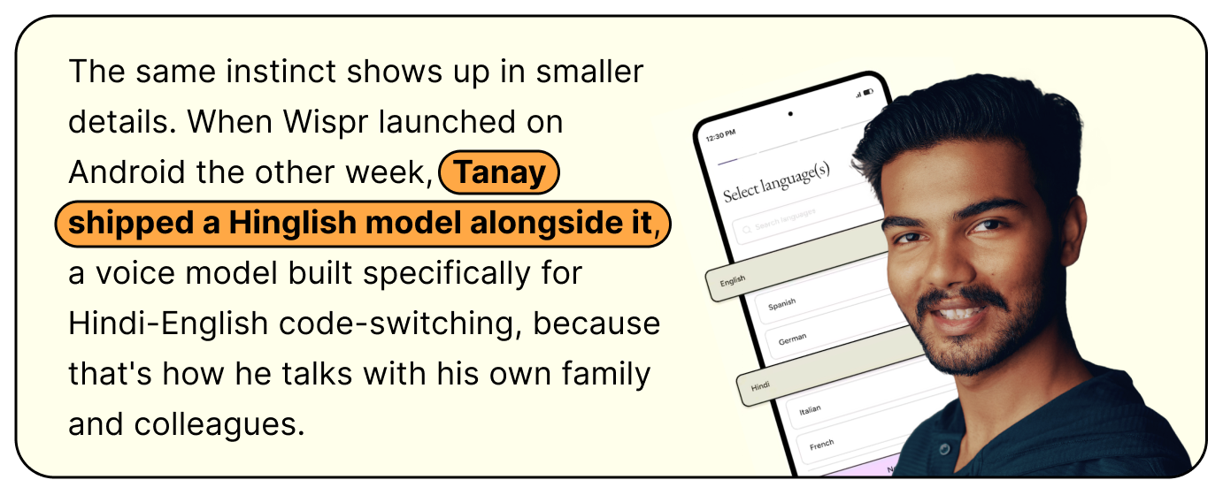 Tanay’s framing for all of this is “Voice OS”, the input layer for how people interact with computers, running system-wide the way a keyboard does today.